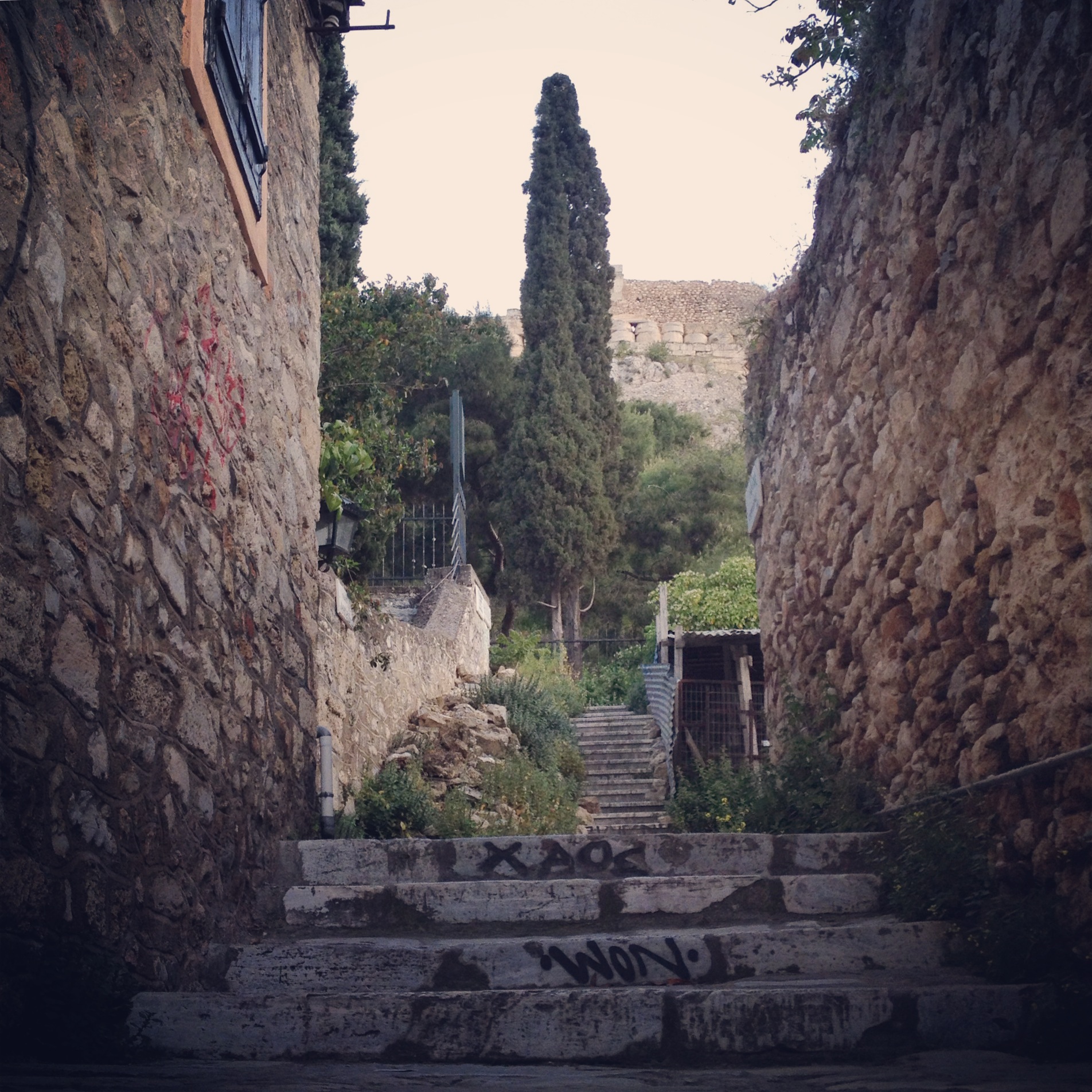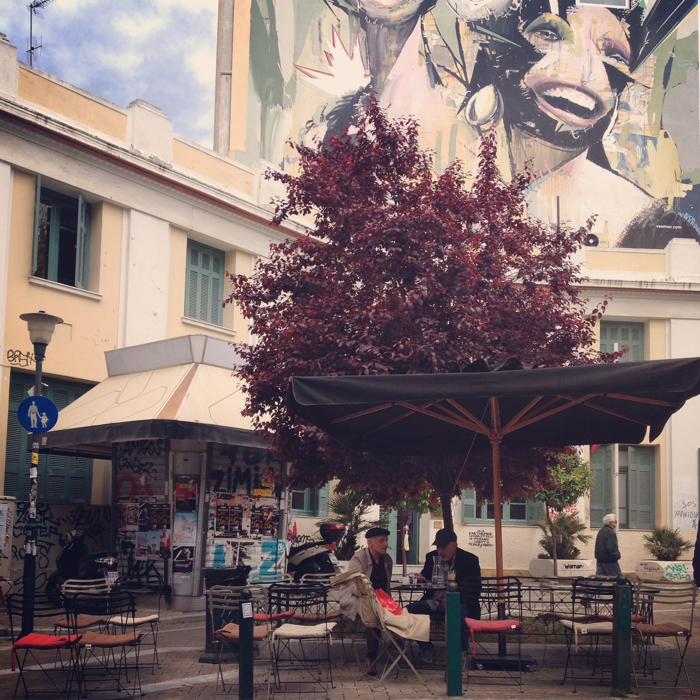 Der Morgen begann mit einem gemütlichen Frühstück und wurde mit einem kleinen Spaziergang in der Nachbarschaft vollendet. Dieser brachte uns durch das Viertel Kerameikos. Um den alten Gasometer bzw. der Metro-Station befindet sich ein eher alternatives Ausgehviertel mit Bars und Live-Musik-Clubs. Tagsüber gibt es hier Essen zu vernünftigen Preisen und schöne, nicht zu touristische Cafes. Nächster Halt war das alte Handwerkerviertel Psirri. Hier wurde es dann schon wieder deutlich kommerzieller aber immer noch entspannter als an den Haupt-Touri-Spots. Viele kleine Cafes und Kneipen, schön zum Sitzen und Schauen, an kleinen Straßen gelegen, welche irgendwie alle sternförmig auf die Platia Iroon zulaufen. Ein gemütliches Viertel! Weiter ging es in Richtung Markthalle entlang der Sofokleous, einer fast schon asiatisch anmutenden Straße mit einer wirren Händlermischung, Von Gewürzen über Elektronik bis hin zu Haushaltswaren und Asialäden.
