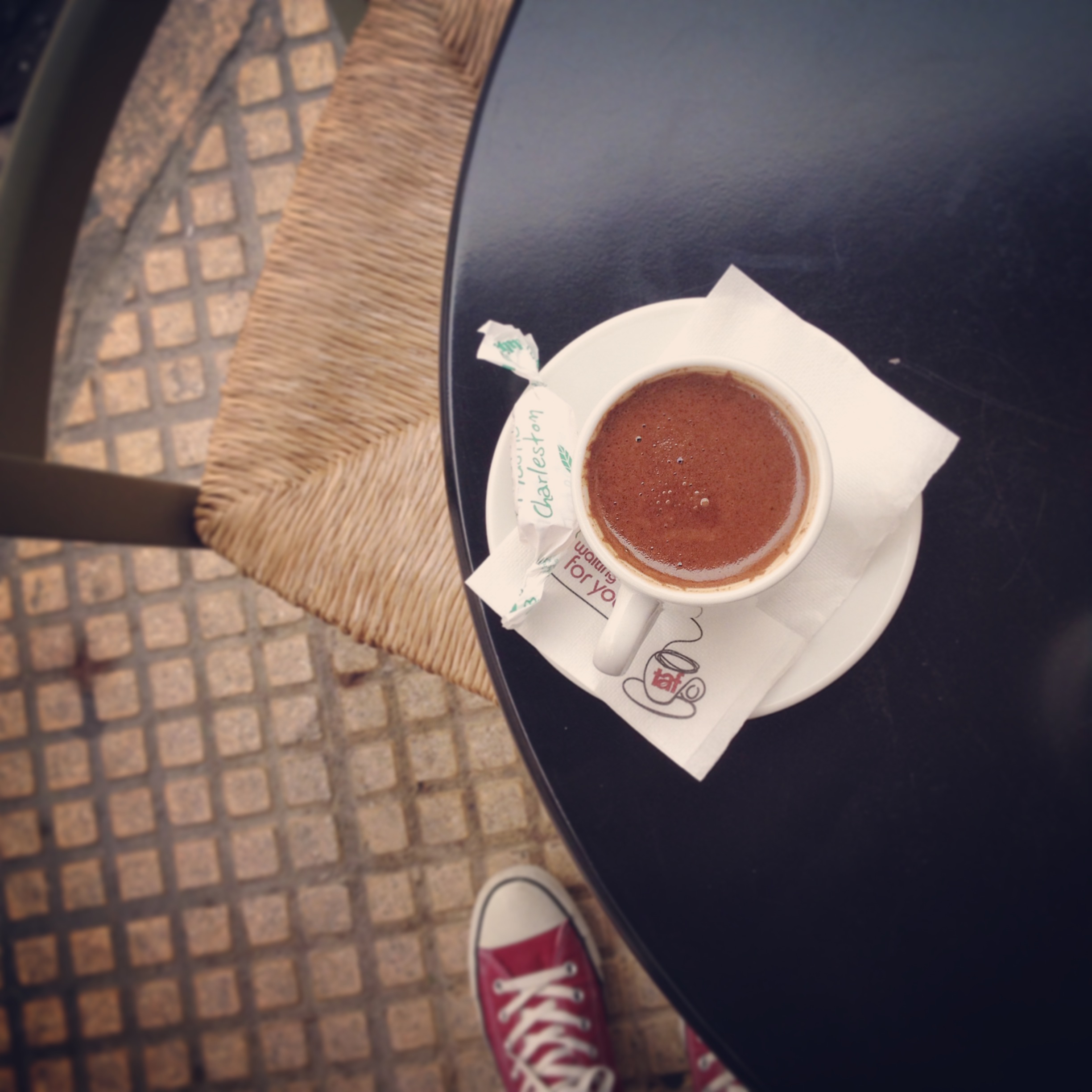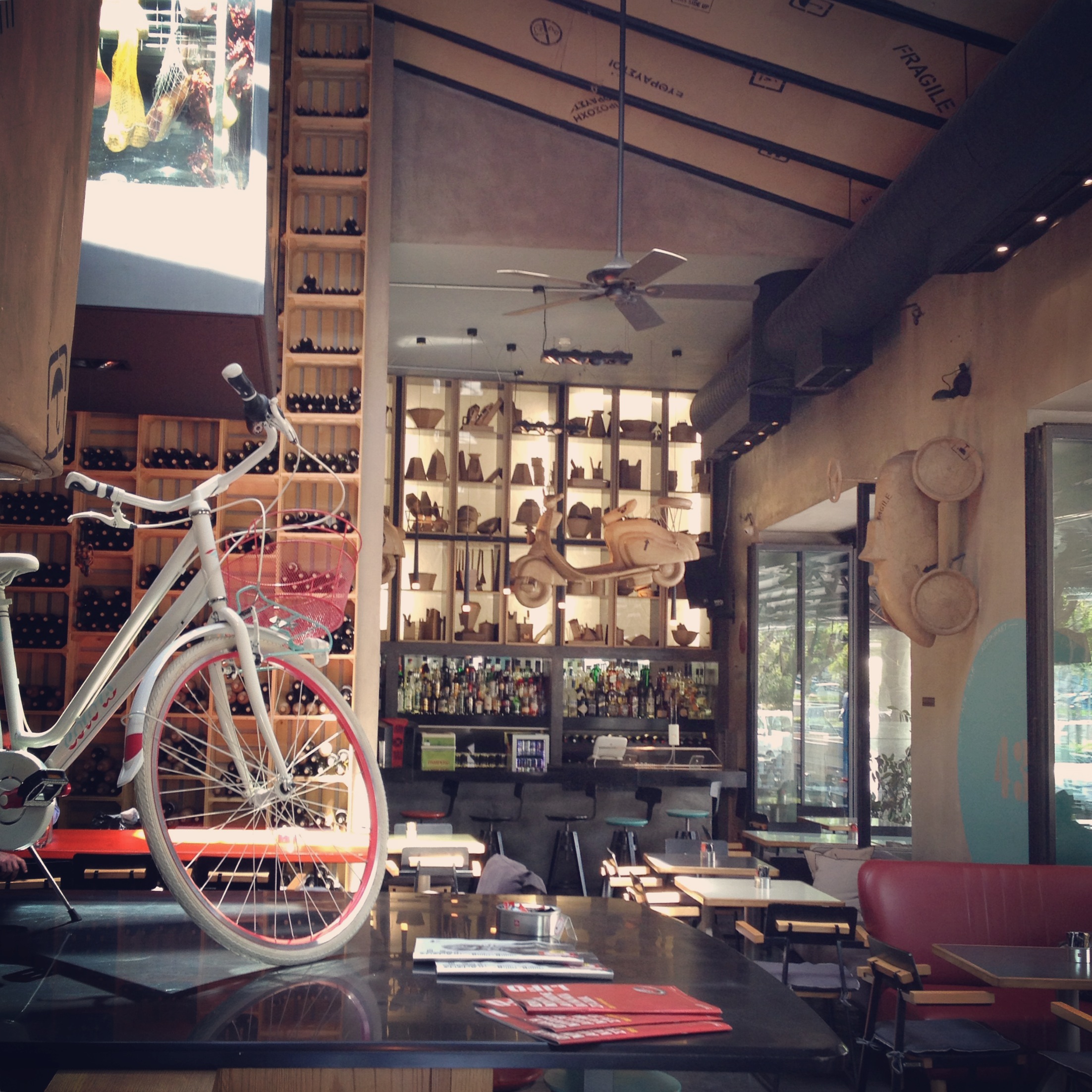 Zu den Grundbedürfnissen zählt heute ja nicht nur das Essen und Trinken sondern auch eine gute Internetverbindung für unterwegs. Die Suche danach führte an der belebten Metro-Station Monastiraki und dem gleichnamigen Flohmarkt vorbei, durch die Touri-Kneipen-Straße Adrianou hindurch bis zur Viertel Emboriko Trigono, dem Handelsdreieck. Auf den ersten Blick gab es hier leider(?) nur einen Modeladen neben dem anderen. Interessanterweise machten sich hier nicht nur die Elektronik-Läden sondern auch die Touristen rar und so sprach nichts gegen eine gemütliche Pause mit einem der irgendwie allen guten griechischen Weißweine. Die „Mobilfunk-Straßen-Abteilung“ wurde dann aber doch noch gefunden und eine 2GB-Karte für 12 Euro erstanden – yeah! Kleiner Tipp: Trotz Prepaid bitte Personalausweis nicht vergessen.