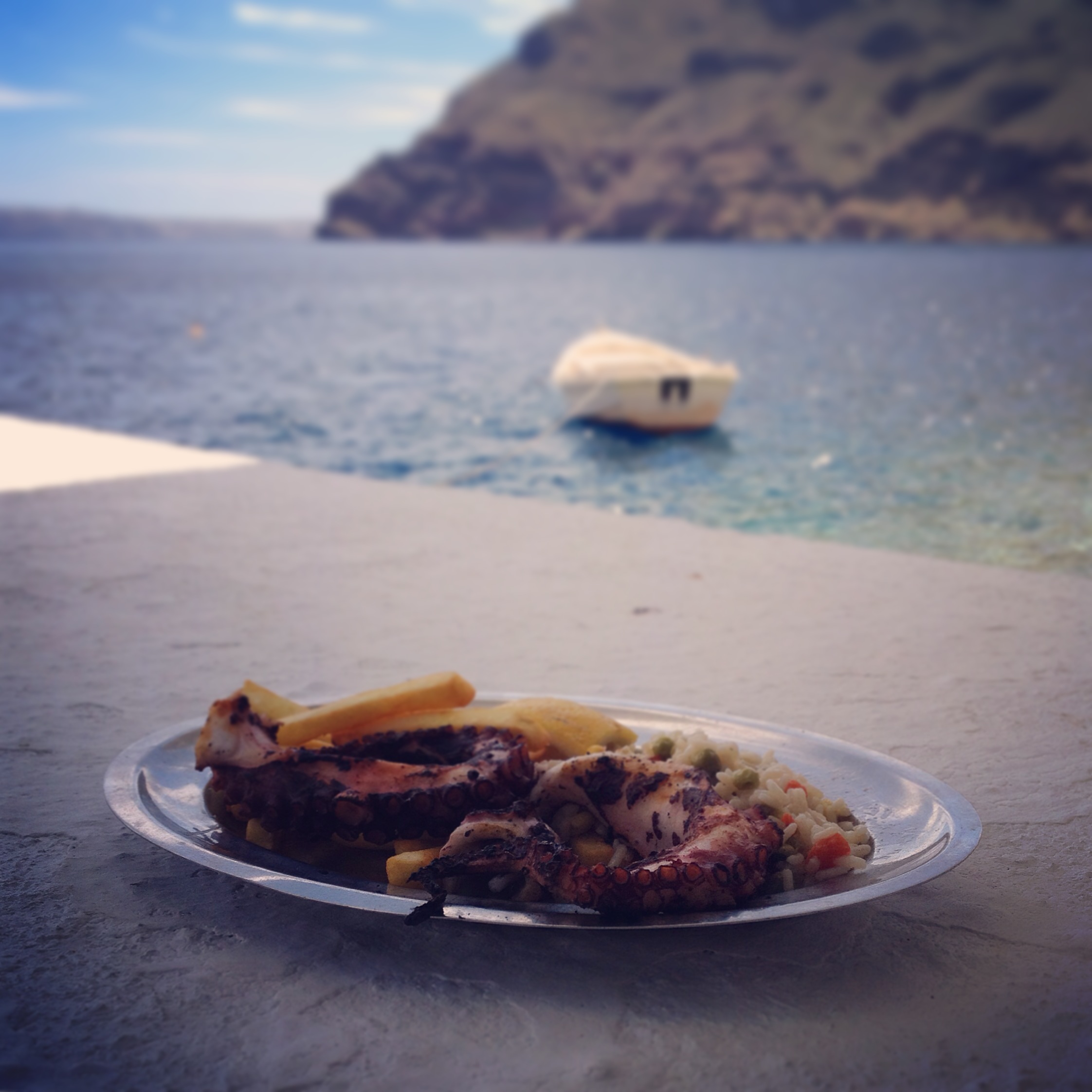 Ich muss gestehen, so richtig waren wir nur einmal Abendessen. Essen mit Ausblick war mir zu teuer, vor allem, wenn ich den Ausblick sowieso habe und im Vorfeld nicht weiß, was ich bekomme. Die eine Erfahrung machte die Sache dann auch nicht besser, völlig tot gebratener Thunfisch ist jetzt keine Empfehlung. Der durchaus empfehlenswerte Süßwein aus Santorini, Vinsanto, als Apperitif konnte die Angelegenheit auch nicht mehr retten. Vielleicht hat ja jemand genauere Informationen oder sogar Erfahrungen?